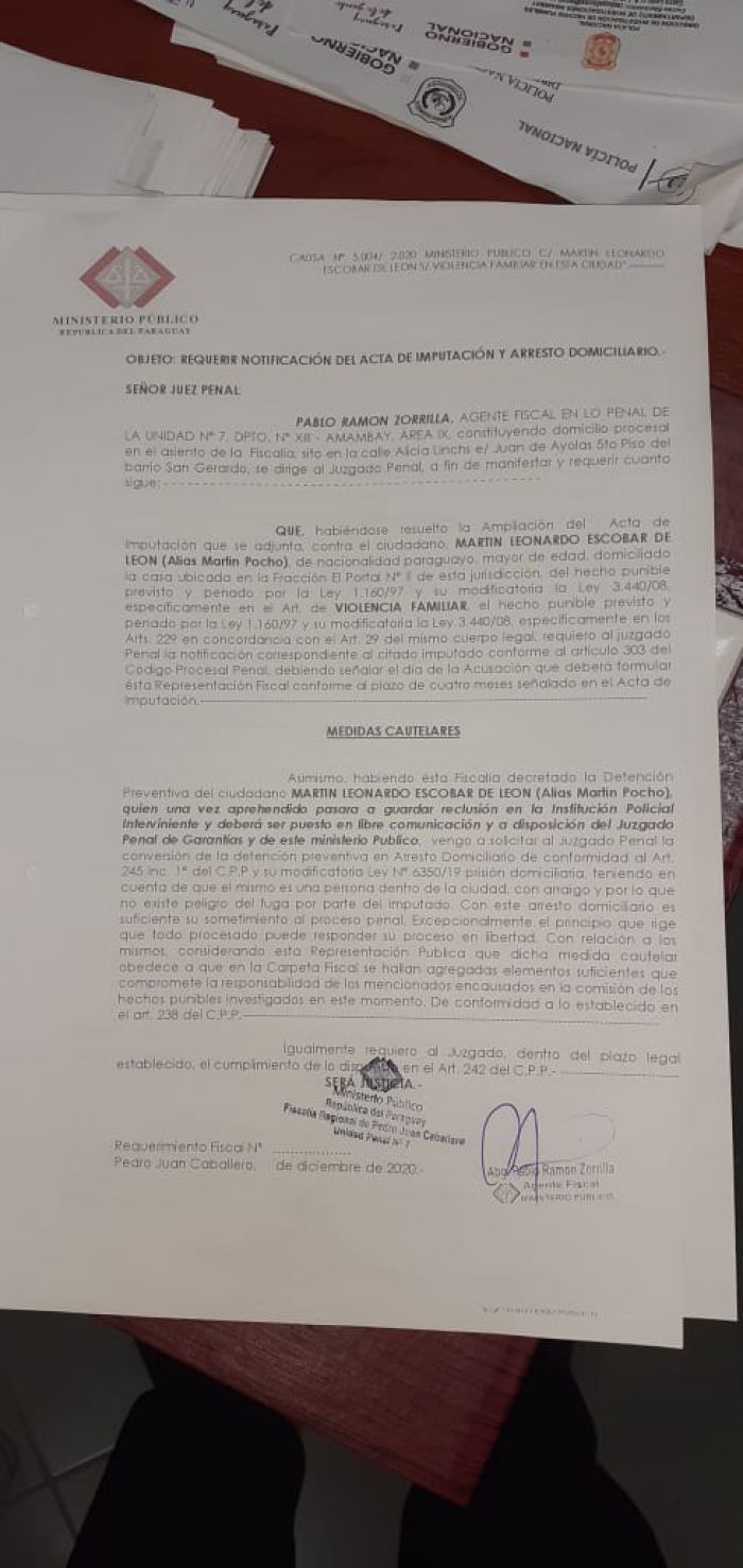 Como medida cautelar el fiscal Abg Pablo Zorrilla solicito que se le aplique como medida la aplicación del "Arresto Domiciliario".