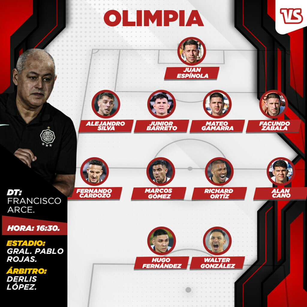 Y arriba, la presencia o no de Cecilio Domínguez para hacer pareja en ataque con Diego Churín. De no estar el número 10, Alfio Oviedo está listo para ingresar. Lo que está confirmado es que Cerro Porteño no tendrá al Sub-18 de entrada.