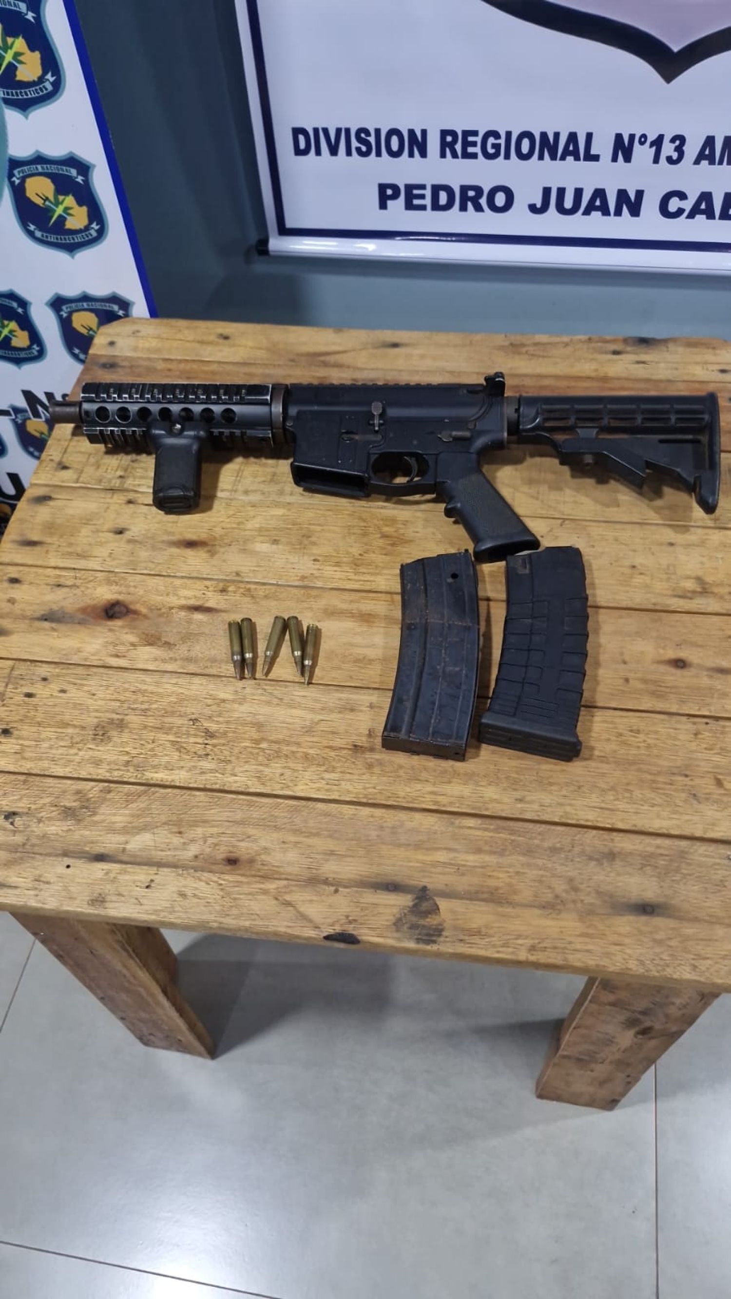En el lugar, los intervinientes incautaron un fusil calibre 5.56 mm, dos cargadores con sus respectivos cartuchos, varias dosis de cocaína y numerosos teléfonos celulares.